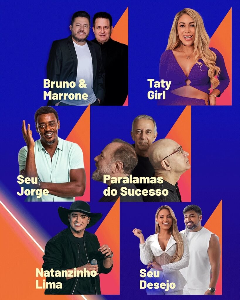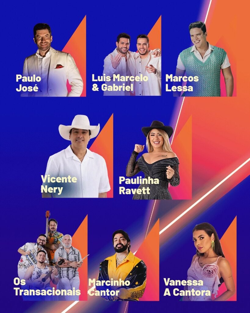 Os palcos do Réveillon de Fortaleza 2026 serão animados por Luan Santana, Dipas, Os Transacionais, Natanzinho Lima, Gabi Nunes, Xand Avião, Nayra Costa, Bruno e Marrone, Belinho, Vanessa, a Cantora, Seu Desejo, Gustavo Serpa, Wesley Safadão, Marcinho Cantor, Matuê, Marcos Lessa, Claudia Leite, Luis Marcelo e Gabriel, Os Paralamas do Sucesso, Paulo José Benevides, Seu Jorge, Paulinha Ravett, Taty Girl, Di Ferreira, Waldonys e Vicente Nery.